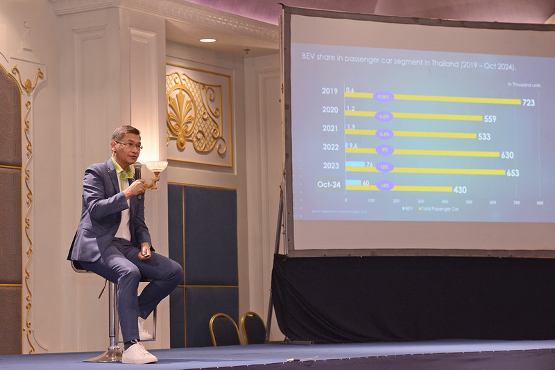 สำหรับวิทยากรในการเสวนาครั้งนี้ประกอบไปด้วยผู้เชี่ยวชาญในด้านต่างๆ ทั้งในส่วนของภาครัฐ ภาคเอกชน สมาคมของทั้งผู้สื่อข่าวรถยนต์และรถจักรยานยนต์ไทย และสมาคมยานยนต์ไฟฟ้าไทย ซึ่งในช่วงแรกเป็นการให้ข้อมูลในแง่ภาพรวมของตลาดรถยนต์ไฟฟ้าของไทยโดยคุณกฤษฎา อุตตโมทย์ ที่ปรึกษากิตติมศักดิ์สมาคมยานยนต์ไฟฟ้าไทย ซึ่งในปัจจุบัน ไทยมีส่วนแบ่งในตลาดรถยนต์ไฟฟ้าโลกช่วงไตรมาส 4 ของปี 2024 อยู่ที่ 12.60% ซึ่งมากกว่าประเทศอย่างสหรัฐอเมริกา และเกาหลีใต้ ส่วนในตลาดอาเซียน ไทยถือเป็นตลาดใหญ่ของรถยนต์พลังไฟฟ้า โดยในปี 2023 ไทยมีส่วนแบ่งในตลาดถึง 78.70% เลยทีเดียว