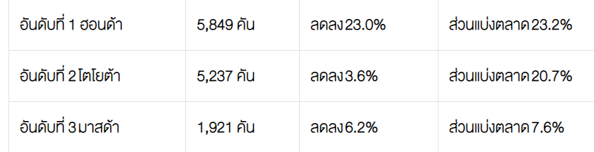 2. ตลาดรถยนต์นั่ง ปริมาณการขาย 25,255 คัน ลดลง 13.5%