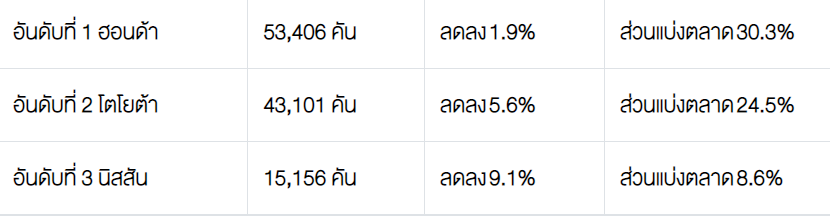 2. ตลาดรถยนต์นั่ง ปริมาณการขาย 176,140 คัน ลดลง 6.7%