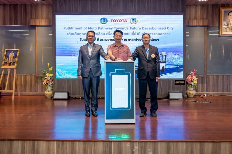 ทั้งนี้ เพื่อศึกษาในด้านโครงสร้างพื้นฐานที่จำเป็น ตลอดจนการรับรู้ของผู้คน และพฤติกรรมการใช้งาน ภายใต้สภาพแวดล้อมจริงในประเทศไทย โตโยต้าจึงได้เริ่มโครงการทดลองเพื่อศึกษาวิจัยข้อมูลดังกล่าว ภายใต้ “โครงการพัฒนาเมืองต้นแบบที่ยั่งยืนปราศจากมลภาวะ” ณ เมืองพัทยา โดยร่วมกับพันธมิตรในภาคส่วนต่างๆ อาทิ องค์กรที่มีความเชี่ยวชาญด้านพลังงาน ตลอดจนภาครัฐ และผู้ประกอบการในจังหวัดชลบุรี ร่วมจัดสร้าง ระบบนิเวศเพื่อรองรับการใช้งานยานยนต์ที่เป็นมิตรต่อสิ่งแวดล้อม ในระบบส่งกำลังที่หลากหลาย ภายใต้แนวทาง Multi Pathway สำหรับให้ชุมชนและนักท่องเที่ยวในเมืองพัทยาได้ทดลองใช้งานในทุกรูปแบบการเดินทาง ประกอบด้วย การเดินทางระยะสั้น (Last mile) ด้วยรถยนต์โตโยต้า รุ่นซีพลัส พอด (C+Pod) การเดินทางระยะกลาง (Inter City) ด้วยรถยนต์พลังงานไฟฟ้าแบบปลั๊กอินไฮบริด (PHEV) และ รถยนต์พลังงานไฟฟ้า (BEV) ตลอดจนการประสานความร่วมมือในการเปิดสถานีไฮโดรเจนแห่งแรกของประเทศไทย เพื่อนำมาเป็นเชื้อเพลิงสำหรับรถยนต์พลังงานไฟฟ้าแบบเซลล์เชื้อเพลิง (FCEV) รุ่นโตโยต้า มิไร ที่โตโยต้านำมาสาธิตการใช้งานในรูปแบบของ การเดินทางระยะไกล (Long Distance) รับส่งระหว่างสนามบินอู่ตะเภา เพื่อให้บริการแก่นักท่องเที่ยวและผู้ที่สนใจในพื้นที่พัทยา – ชลบุรี