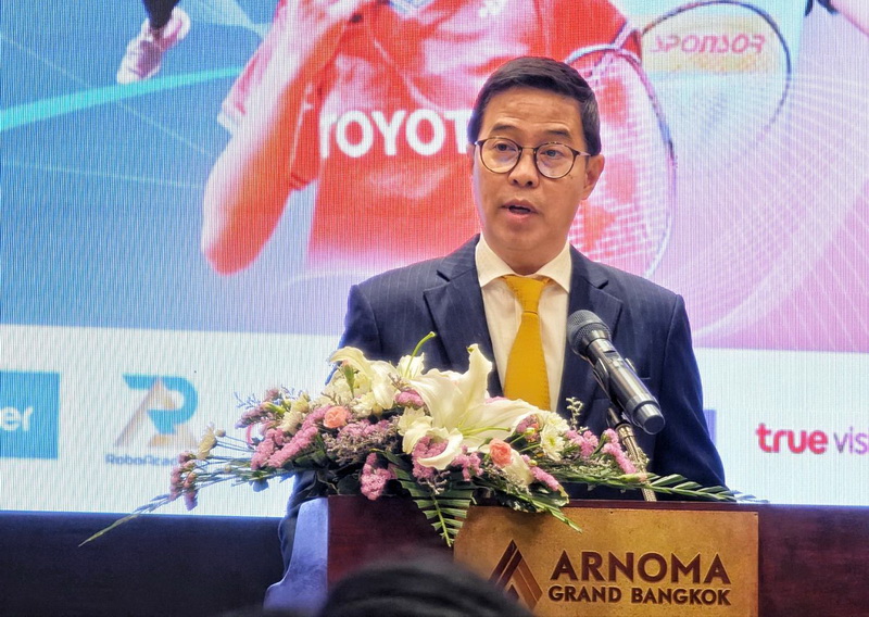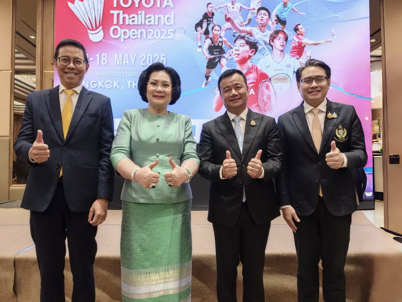 นายณัทธร ศรีนิเวศน์ ผู้ช่วยกรรมการผู้จัดการใหญ่ บริษัท โตโยต้า มอเตอร์ ประเทศไทย จำกัด พร้อมด้วย นายสรวงศ์ เทียนทอง รัฐมนตรีว่าการกระทรวงการท่องเที่ยวและกีฬา ดร.ก้องศักด ยอดมณี ผู้ว่าการการกีฬาแห่งประเทศไทย และคุณหญิงปัทมา ลีสวัสดิ์ตระกูล กรรมการคณะกรรมการโอลิมปิกสากล รองประธานสหพันธ์แบดมินตันโลก และนายกสมาคมกีฬาแบดมินตันแห่งประเทศไทย ในพระบรมราชูปถัมภ์ และเจ้าหน้าที่ผู้มีส่วนร่วมในการจัดการแข่งขัน ร่วมแถลงข่าวการจัดการแข่งขันแบดมินตันระดับนานาชาติ รายการ “TOYOTA Thailand Open 2025” การแข่งขันในระดับ “HSBC BWF World Tour Super 500” ชิงถ้วยพระราชทานพระบาทสมเด็จพระเจ้าอยู่หัวและเงินรางวัลรวม 475,000 ดอลลาร์สหรัฐ หรือประมาณ 16,150,000 บาท เมื่อวันที่ 22 เมษายน 2568 ณ โรงแรมอโนมา แกรนด์ กรุงเทพฯ