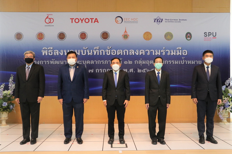 โครงการ “การพัฒนาทักษะบุคลากรภายใต้ 12 กลุ่มอุตสาหกรรมเป้าหมาย” เป็นความร่วมมือกันระหว่าง บริษัท โตโยต้า มอเตอร์ ประเทศไทย จำกัด สถาบันไทย – เยอรมัน พร้อมด้วย มหาวิทยาลัย และวิทยาลัยเทคนิคชั้นนำ 10 แห่ง ในเขตพัฒนาพิเศษภาคตะวันออก และถือเป็นการดำเนินงานภายใต้นโยบายของสำนักงานคณะกรรมการนโยบายเขตพัฒนาพิเศษภาคตะวันออก โดยเป้าหมายของความร่วมมือในครั้งนี้ ทางโตโยต้ามุ่งหวังที่จะนำเอาองค์ความรู้ในด้านเทคโนโลยียานยนต์ การผลิต และการบริหารจัดการเพื่อเพิ่มประสิทธิภาพการผลิต มาถ่ายทอดให้แก่บรรดา นักเรียน นักศึกษา และบุคลากรต่างๆ ในเขตพัฒนาพิเศษภาคตะวันออก (EEC) เพื่อพัฒนาองค์ความรู้ ทักษะ และเตรียมความพร้อมให้มีศักยภาพตรงกับความต้องการของผู้ประกอบการใน 12 กลุ่มอุตสาหกรรมเป้าหมาย ตลอดจนแลกเปลี่ยนข้อมูลและศึกษาความเป็นไปได้ในการต่อยอดพัฒนาเนื้อหาหลักสูตรเพื่อเพิ่มพูนองค์ความรู้และทักษะที่จำเป็นอื่นๆ จากประสบการณ์ตรงของบุคลากรภายในบริษัท โตโยต้า มอเตอร์ ประเทศไทย จำกัด ให้แก่บรรดาบุคลากรเหล่านี้ต่อไปในอนาคตอีกด้วย