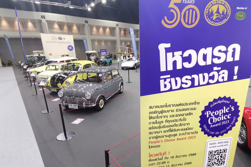 สมาคมรถโบราณแห่งประเทศไทย เชิญผู้ชมงาน “มหกรรมยานยนต์ ครั้งที่ 40” ร่วมลงคะแนนโหวตให้รถโบราณ และรถคลาสสิคที่ประทับใจ ภายในบูธของสมาคมฯ พร้อมลุ้นรับของที่ระลึก รถที่ได้รับคะแนนนิยมจากผู้ชมงานสูงสุด จะคว้ารางวัล People’s Choice Award 2023 ไปครอง โดยเปิดให้โหวตถึงวันอาทิตย์ที่ 10 ธันวาคม 2566 เวลา 22.00 น. และประกาศผลวันจันทร์ที่ 11 ธันวาคม 2566 เวลา 14.00 น.