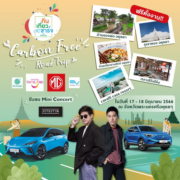 นอกจากนี้ เอ็มจี ยังได้จัดกิจกรรมพิเศษให้กับลูกค้ายานยนต์ไฟฟ้า เอ็มจี ทุกรุ่น ได้ร่วมทริปสุดพิเศษ กินเที่ยวชาร์จ Carbon Free Road Trip ขับอีวีเที่ยวพระนครศรีอยุธยา ที่มีกำหนดจัดขึ้นในวันที่ 17-18 มิถุนายนนี้ โดยเปิดรับสมัครเจ้าของรถไฟฟ้า เอ็มจี ไม่จำกัดรุ่น ร่วมเป็น 1 ใน 30 ผู้โชคดีที่จะมาประเดิมเปิดทริปแรก ด้วยกติกาง่ายๆ เพียงแค่ถ่ายภาพคู่กับรถไฟฟ้าแบรนด์เอ็มจีพร้อมบอกเล่าความประทับใจหลังจากที่ได้ใช้งาน ลงใน www.facebook.com/MGcarsThailand โดยเปิดรับสมัครตั้งแต่วันนี้จนถึงวันที่ 30 พฤษภาคม 2566 และจะประกาศรายชื่อผู้ที่ได้รับสิทธิ์ร่วมกิจกรรมพิเศษดังกล่าวในวันที่ 1 มิถุนายนนี้